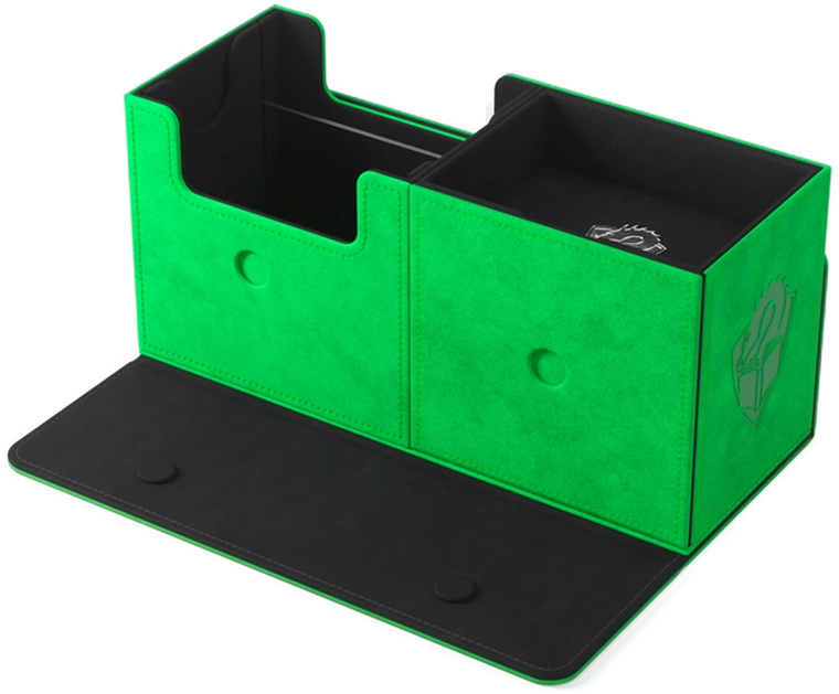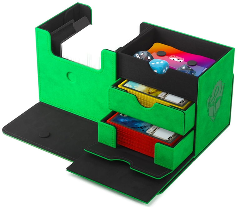 - Top section for additional accessories, cards, tokens, dice, Life Counter, Toploaders, or Slide Card Cases