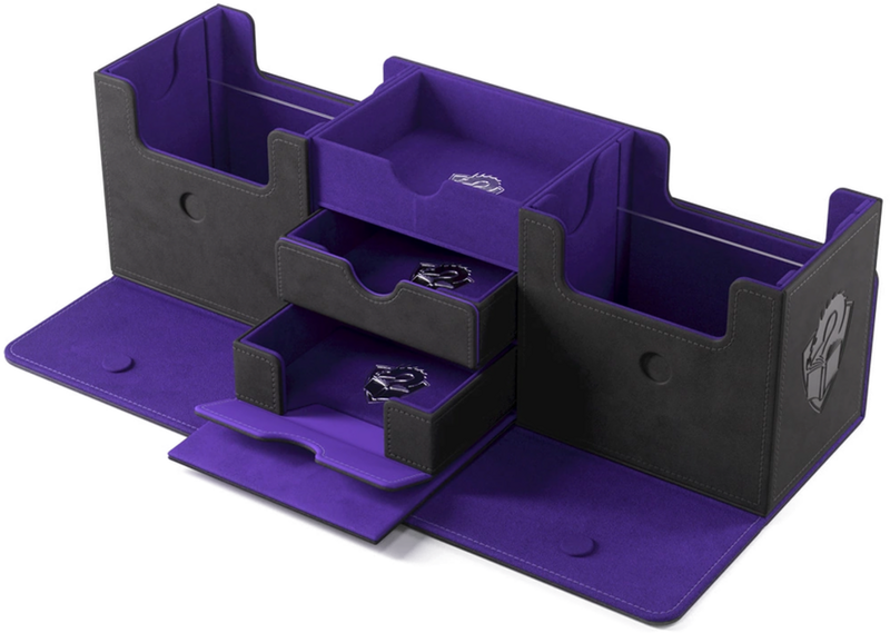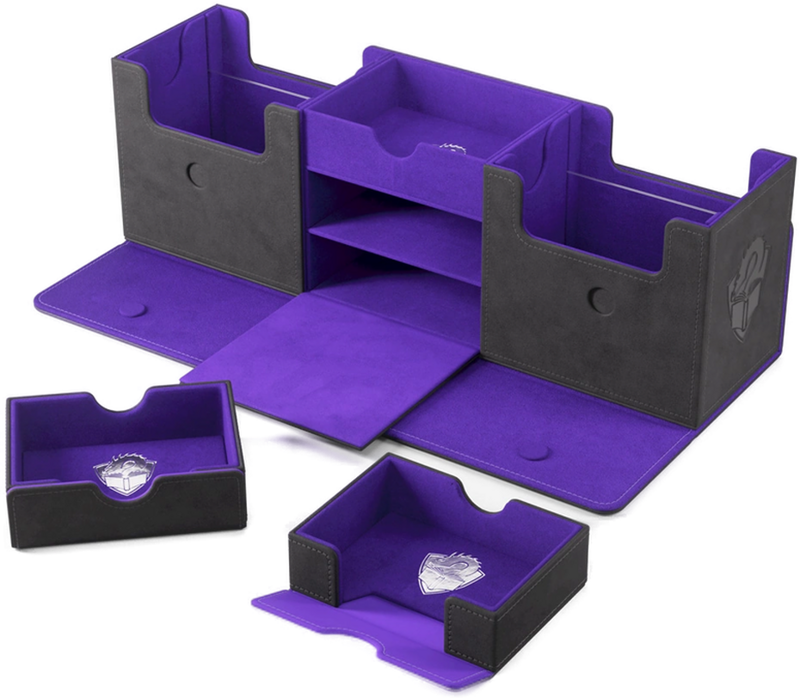 - Top section for additional accessories, cards, tokens, dice, Life Counter, Toploaders, or Slide Card Cases