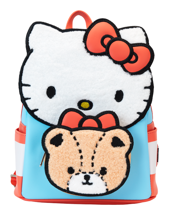 Say hello to the sweetest of friends! A super-cute duo is ready to join you on fun journeys. Take along this Hello Kitty™ and Friends backpack, spotlighting Hello Kitty’s teddy bear, Tiny Chum. Hello Kitty’s applique face is covered in soft sherpa, and her signature bow pokes up on top. Store extra goodies for friends on your travels in the front pocket, which features a cuddly teddy bear face, covered in soft brown sherpa material as well. There’s plenty of room inside this backpack to secure your daily essentials and share smiles wherever you go.