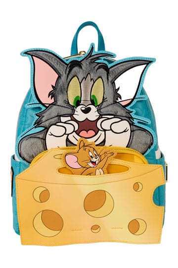 This is one mini backpack from Loungefly that you won't need to embark on a cat and mouse chase for. Paying homage to Tom and Jerry, this faux leather backpack features an amusing plush, printed and embroidered depiction of Tom ogling over a piece of cheese - and Jerry pops up from the hole of the debossed front zipper pouch! Finished with applique detailing, it's the ideal tribute to an animated classic in backpack form.