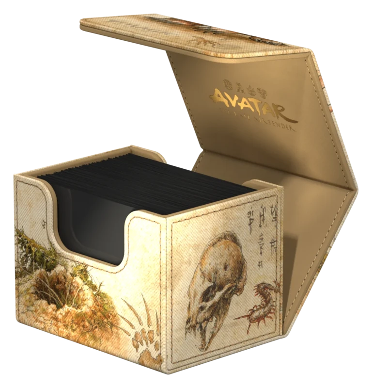 The Sidewinder 100+ made from durable Xenoskin material holds up to 100 double-sleeved cards, which are kept secure in the deck box thanks to a strong magnetic closure and soft microfiber inner lining. The durable, high-quality Xenoskin surface of the Sidewinder is printed in full color with officially licensed artwork from the Magic: The Gathering | Avatar: The Last Airbender set.