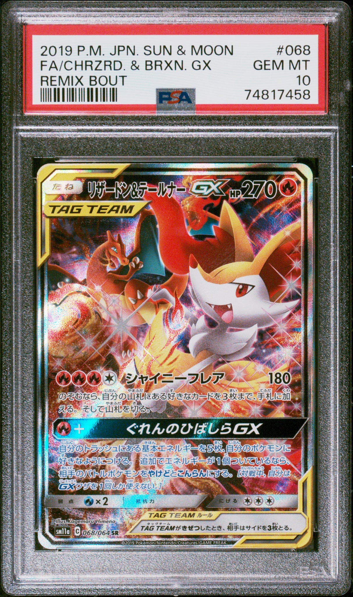 PSA - Pokemon - S&M, Remix Bout (SM11a) - 068/064 : Charizard & Braixen (Alt Art) - PSA 10