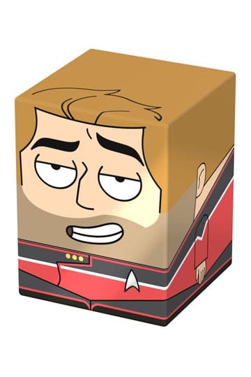 Collectible box for storing TCG decks, tabletop gaming accessories, and/or collectibles. The Jack Ransom Squaroe from the Star Trek: Lower Decks™ edition holds up to 100 cards in double protective sleeves if used as a deck box. Squaroes are made from 78% renewable resources and fit perfectly into the separately available Collectors Case.