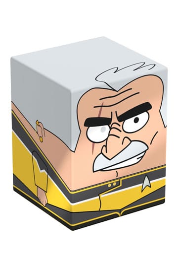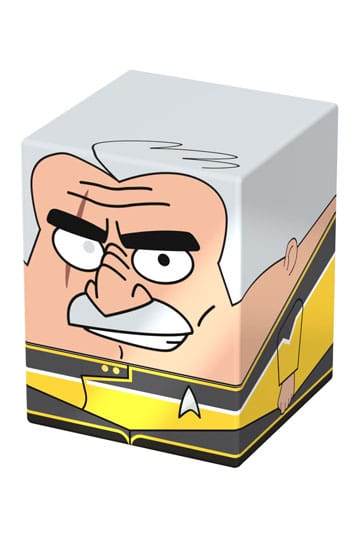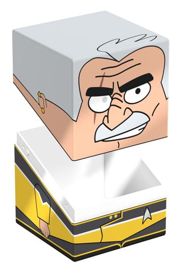 Collectible box for storing TCG decks, tabletop gaming accessories, and/or collectibles. The Shaxs Squaroe from the Star Trek: Lower Decks™ edition holds up to 100 cards in double protective sleeves if used as a deck box. Squaroes are made from 78% renewable resources and fit perfectly into the separately available Collectors Case.