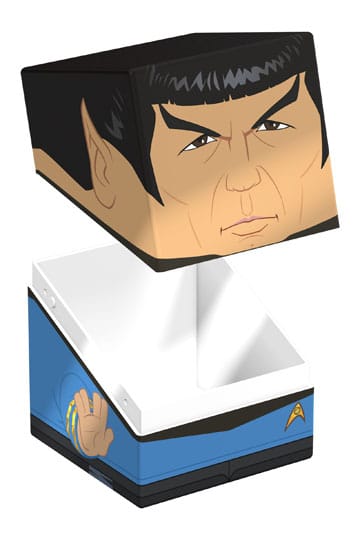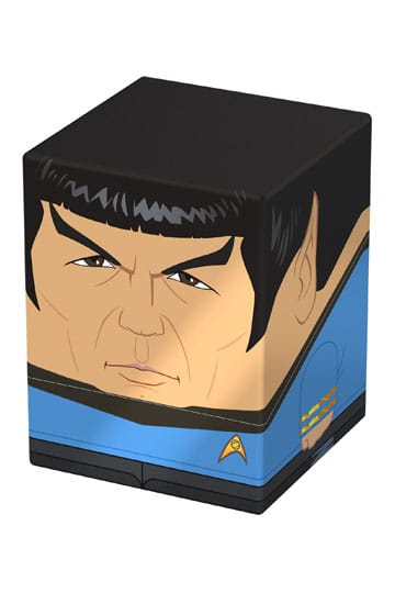 Collectible box for storing TCG decks, tabletop gaming accessories, and/or collectibles. The Spock Squaroe from the Star Trek: The Original Series edition holds up to 100 cards in double protective sleeves if used as a deck box. Squaroes are made from 78% renewable resources and fit perfectly into the separately available Collectors Case.